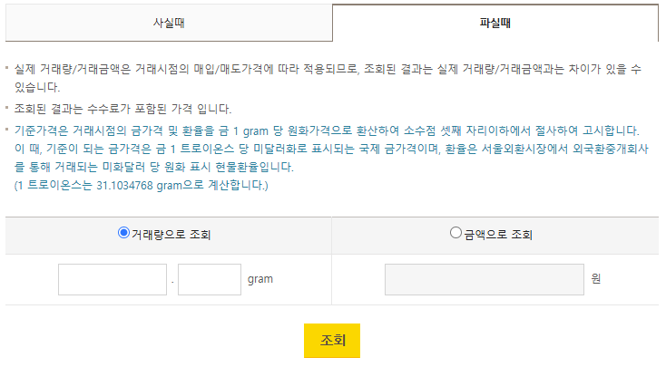 | KRX 금시장 | 공신력 있고 시세가 투명함 | 실물 인출 시 수수료 발생 |